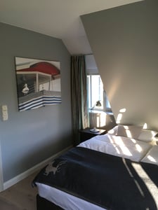 Unsere Doppelhaushälfte in Braderup auf Sylt hat eine Wohnfläche von 120 qm auf zwei Etagen. Im renovierten Obergeschoss befindet sich 1 Schlafzimmer mit einem
