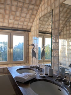 inmitten eines mit Heide bewachsenen Naturgrundstücks.
